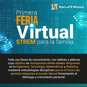 La Red Temática CONACYT para el desarrollo e incorporación de la Tecnología Educativa “RedLate” mediante su Comité de Género y Talento los invita a participar en la “Primera Feria Virtual STREM para la familia”. Toda una fiesta de conocimiento, con talleres y pláticas cuyo objetivo es incorporar a los estudiant@s desde edades tempranas a las Ingenierías, Tecnologías, Matemáticas y Robótica, mediante metodologías disruptivas que fomentan el liderazgo y crecimiento personal que les permitan integrarse al mundo laboral.