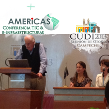 The AMERICAS Conference took place at the Convention Center of Campeche (Mexico) on 3-4 October 2013 in the framework of the CUDI’s Autumn Meeting, hosted by Universidad Autónoma de Campeche. The AMERICAS project has been promoting e-Infrastructures for e-Science collaboration to spread the benefits and power of world-class ICT-based infrastructures for R&D cooperation between Europe and Latin America. The main objectives of the EU-LAC ICT & e-Infrastructures Conference were to show the impact of e-Infrastructures used in different e-Science domains in Latin America: Life Sciences, Earth Sciences, Engineering, Computer Science and Mathematics, Data Access & Preservation, Astronomy & Astrophysics, and to strengthen networking between ICT and e-Infrastructures communities, to exchange views, share information and identify new opportunities for R&D collaboration.