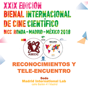 @ASECIC invita en la sede del Madrid International Lab a la entrega de proyecciones, premios y reconocimientos de la XXIX ed. de la Bienal Internacional de Cine Científico@BICC2018 Ronda-Madrid-México. Próximos miércoles y jueves 28 y 29 de noviembre de 16 a 20 horas.