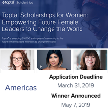 $10,000 Scholarship Meaningful support, so you can focus on developing yourself as a future leader. One year of Mentorship Mentoring from a Toptal expert with the skills and knowledge you need to set you on the right path.