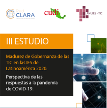 - Presentación del III Estudio “Madurez de Gobernanza de las TIC en las Instituciones de Educación Superior (IES) de Latinoamérica 2020. Perspectiva de las respuestas a la pandemia de COVID-19”, la puedes consultar dando clic aquí.